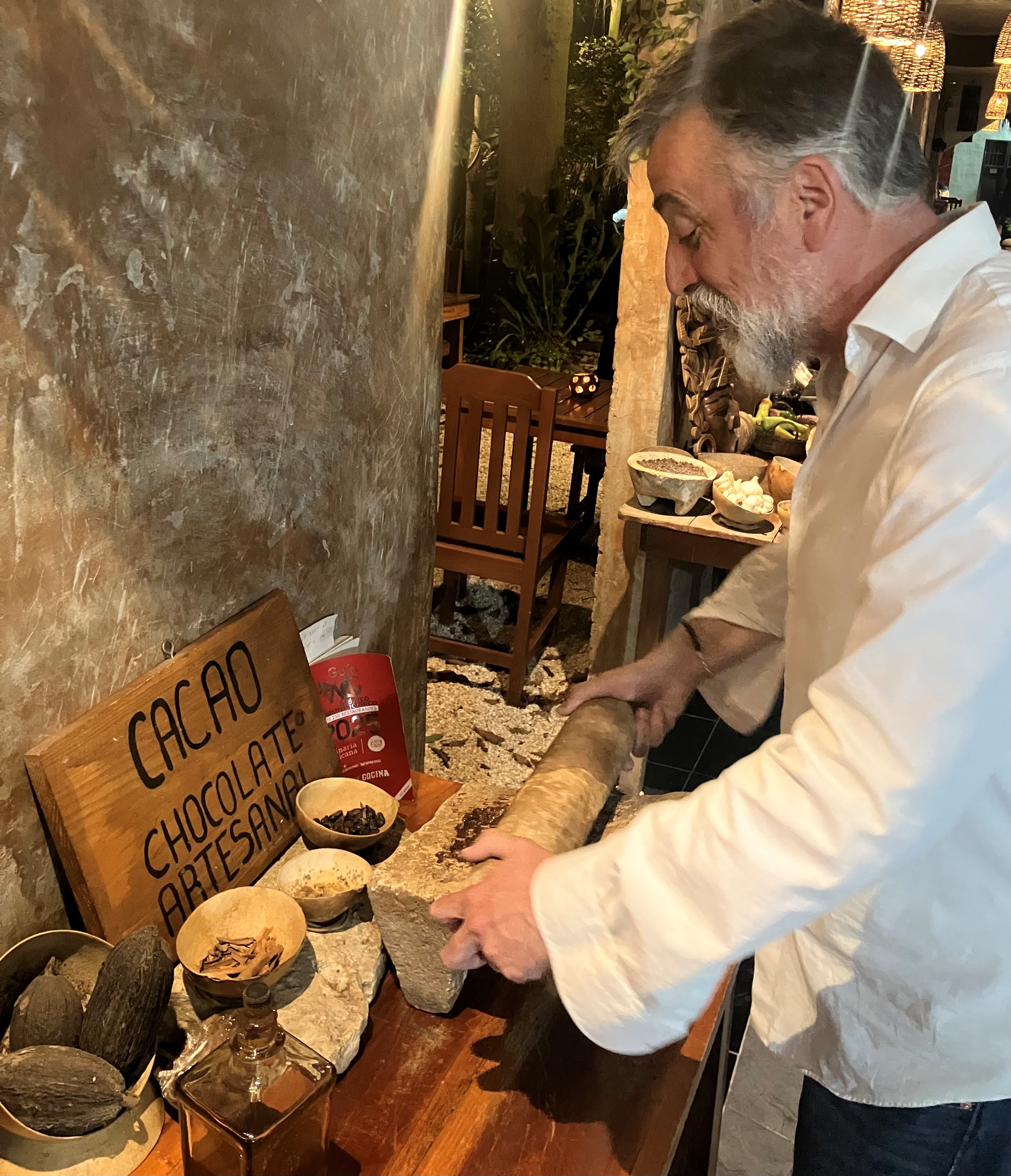 El restaurante Ix Cat Ik, realmente está decorado con mimo, para turistas (como yo, que no solo visito, sino que toco, huelo y pruebo todo), termino moliendo semillas de cacao como si supiera lo que hago. ¡Qué aroma! Y con miel... una delicia exótica. Pero la comida no es tán distinta y no merece el paseo.